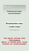 Je consulte Amélie depuis presque 3 ans en conseils ayurvédique et en kinésiologie. j'ai eu un suivi personnalisé et mes problèmes inflammatoire ainsi que biliaires ont disparus. j'ai suivi également l'initiation à l'ayurvéda sur 6 modules en fin d'année 2021. Ce qui me permet d'être autonome au quotidien et de continuer les bonnes pratiques. de plus vous rencontrer des personnes extras avec des échanges très intéressants. Le suivi en kinésiologie est miraculeux et complète le parcours en ayurvéda pour ma part. Je suis à chaque fois impressionnée dont Amélie arrive à cibler le sujet à traiter et de constater que cela fonctionne extraordinairement. Merci mille fois Amélie !